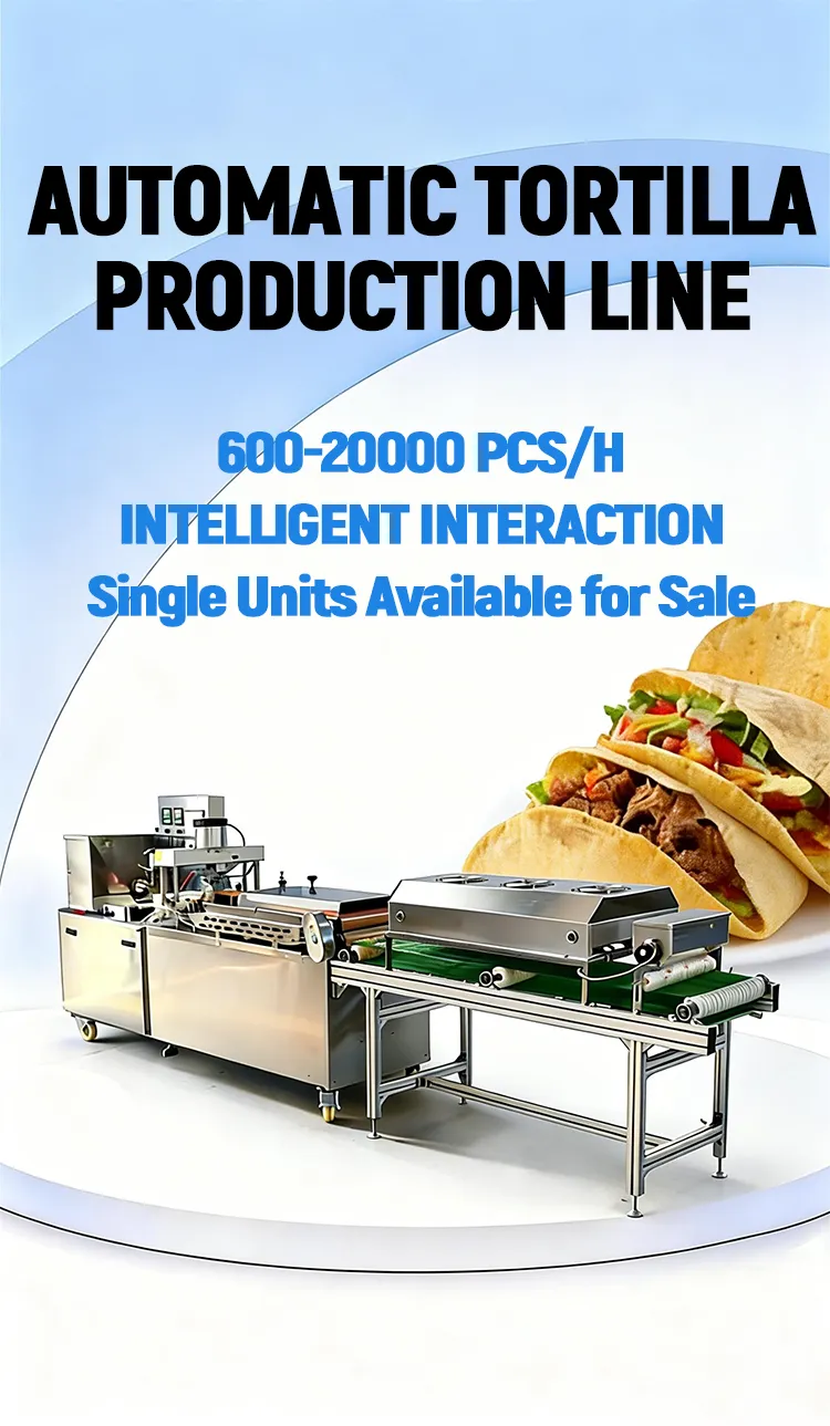 The automatic tortilla production line, with high output and automation, adopts "continuous pressing technology". The basic process is divided into kneading, grouping, waking, forming, baking, cooling, testing, cake stacking, and packaging; The automation level can reach 90%, and the entire line is equipped with intelligent operating systems, central processing units, human-computer interaction interfaces, and precision sensors, making control more stable to support the continuous growth of product demand.