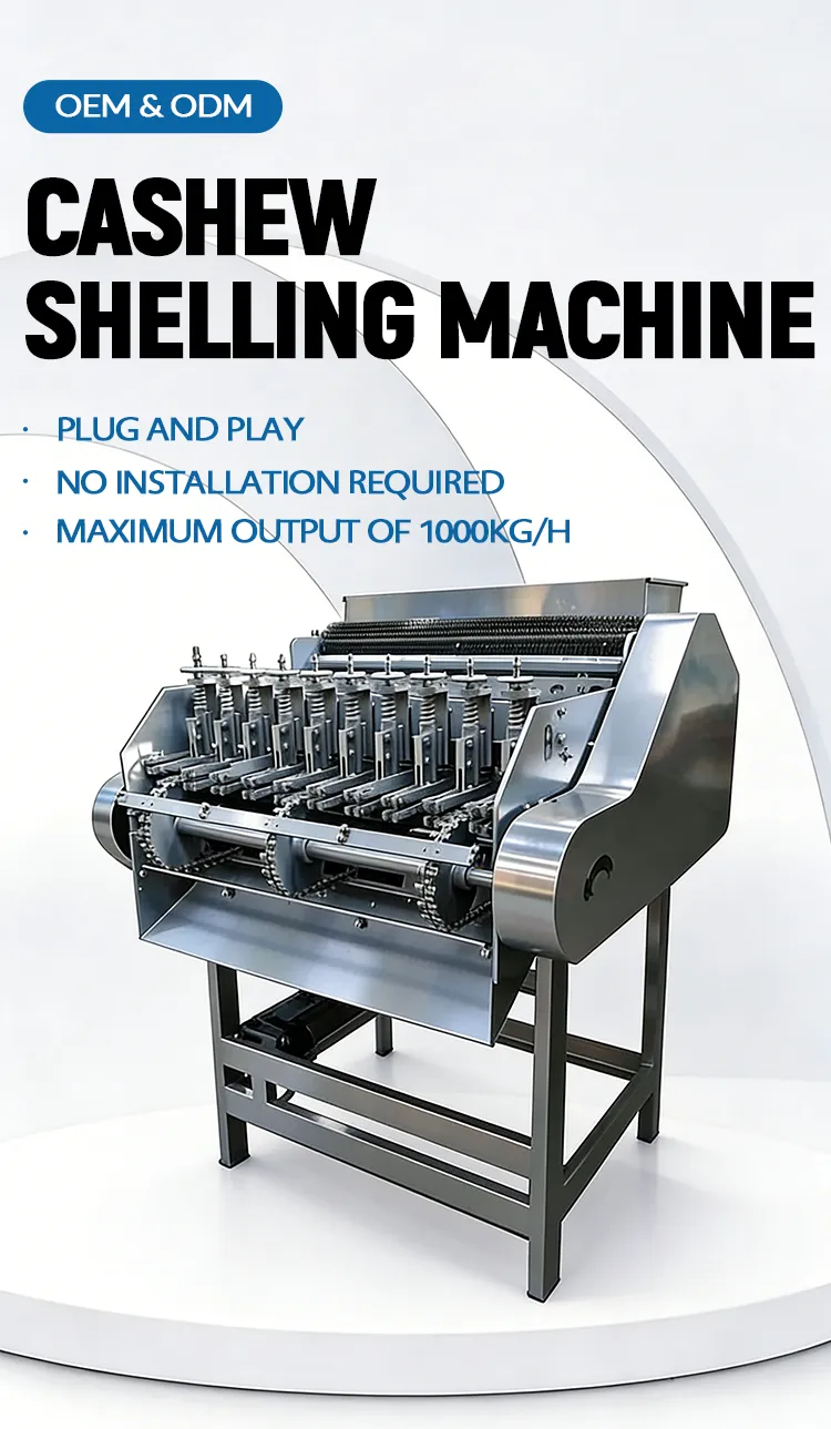 This cashew shelling machine cracks open hard shells quickly while keeping the kernels whole and undamaged. Made of durable stainless steel it is easy to operate clean and maintain. The adjustable settings fit different nut sizes making it perfect for small farms and processing workshops.