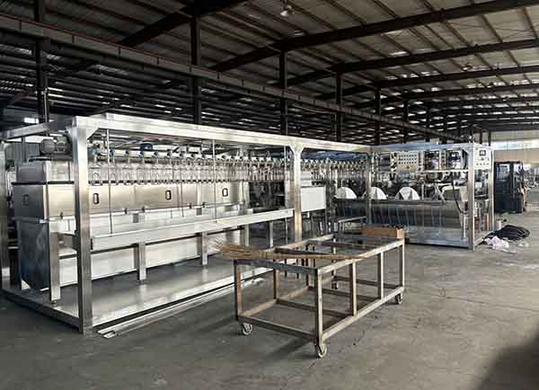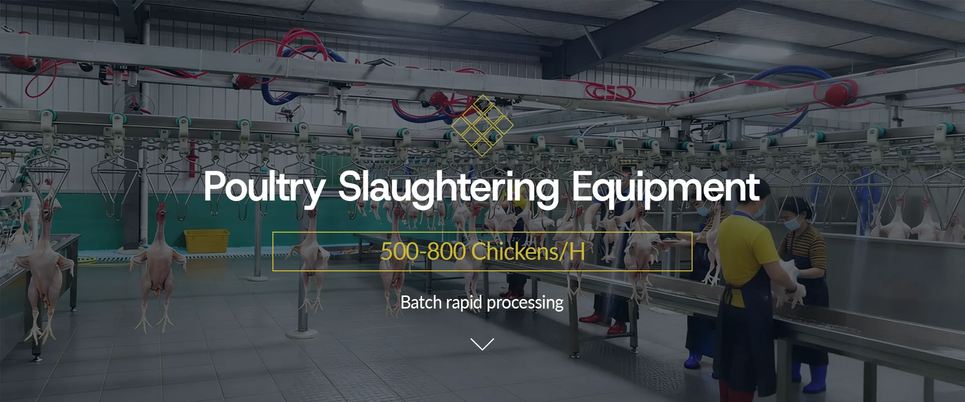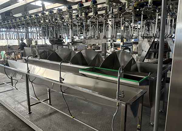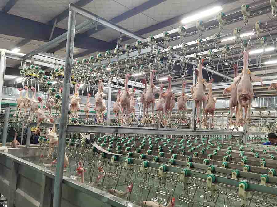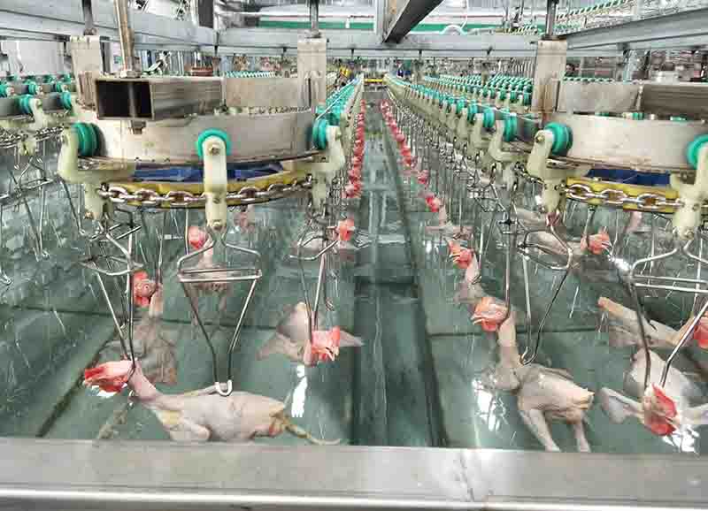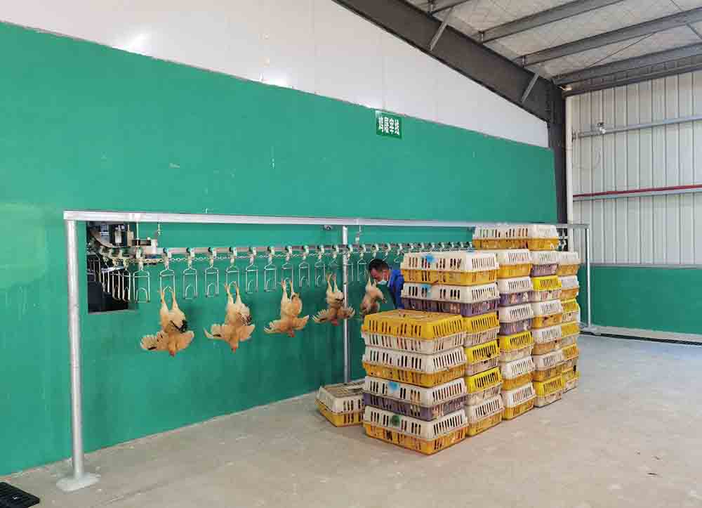 Poultry slaughtering and processing technology: live poultry→ quarantine waiting for slaughter → unloading poultry → hanging poultry → stunning → slaughtering → bleeding → diffuse → depilation → evisceration → cooling → segmentation,etc., which can be made according to different site and plant requirements. According to the slaughtering output, slaughtering variety requirements and slaughtering process requirements, the corresponding plan design is carried out to ensure that each plan design is more in line with the customer's actual production needs and achieves better slaughtering results.