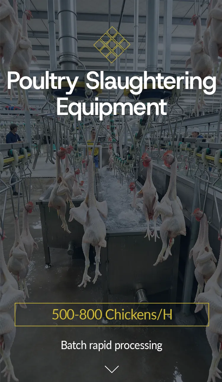 This slaughtering line is a small broilers slaughtering line suitable for 500-800 BPH It is characterized by installation-free, compact structure and high cost performance. The whole is made of stainless steel, It has complete functions from chicken hanging to scalding, chicken feather removal,evisceration and chicken carcass pre-cooling. It is the first choice for small slaughtering enterprises.